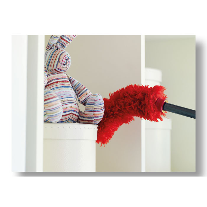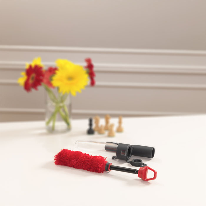 - Feather duster connects to the tube of the vacuum cleaner. While cleaning, the feather gets charged with static electricity that helps catch the dust more efficiently
